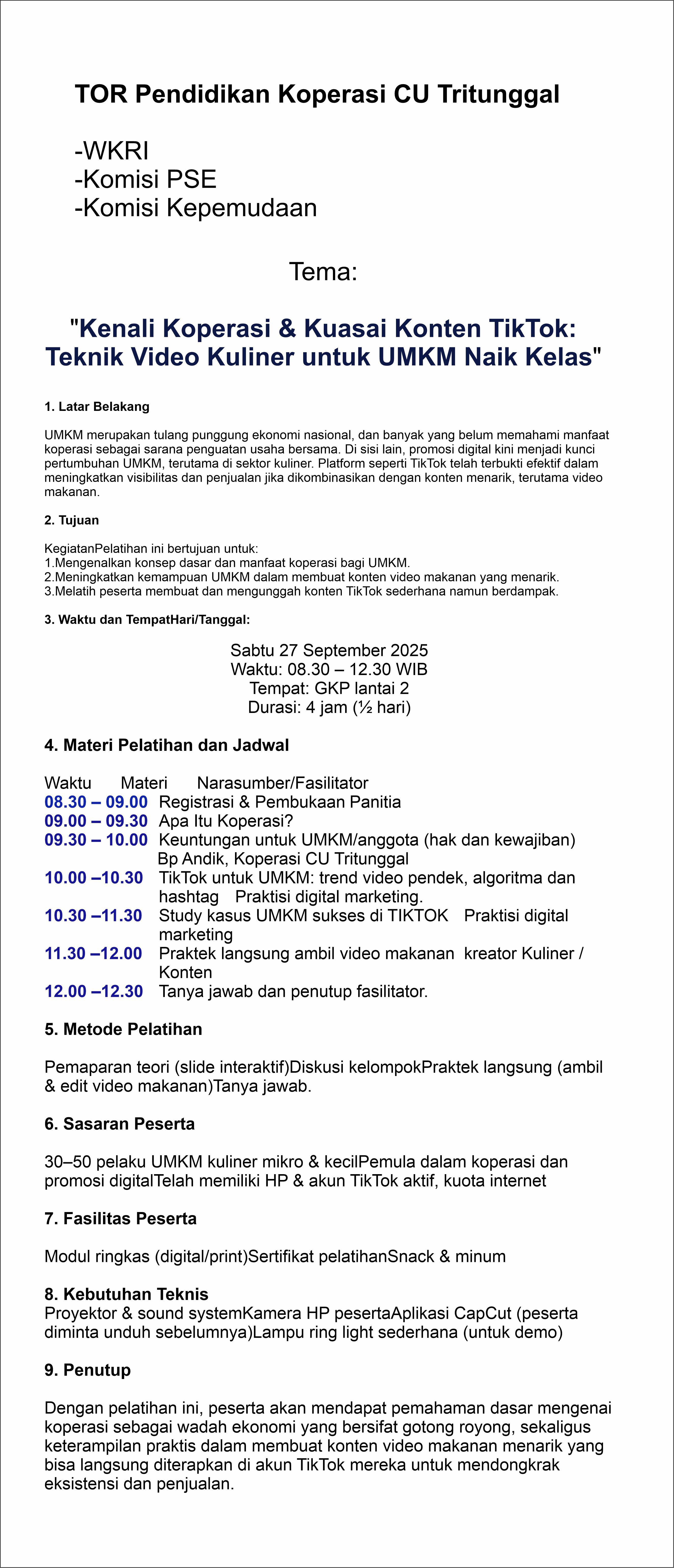 Untuk melayani kebutuhan para Anggota Koperasi Simpan Pinjam (KSP) “CU TRI TUNGGAL”, dilaksanakan program berikut ini :